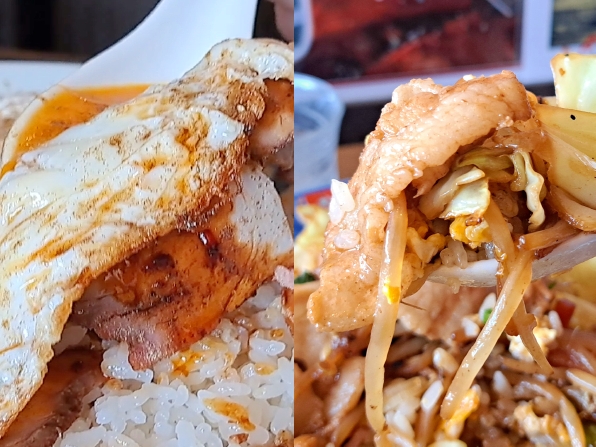 さぁ気になるお味です。。。私は"特やき"でしたが、I.K.君から"焼豚玉子飯「辛玉」"を一口もらいました、、、ほぅほぅほぅ、「白楽天」さんの祖伝タレは、かなり甘口なのですが、特製ラー油+辛味で、口当たりは甘く、後から辛味がやってきます。。。