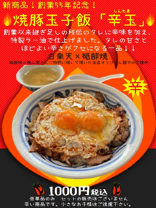 『創業55周年記念!焼豚玉子飯「辛玉」(白楽天)』