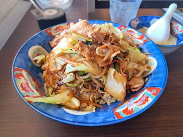 約5分ほど待つと席が空いたので、(相席ですが)座ることができました、、、そしてI.K.君は予定の"焼豚玉子飯「辛玉」"を、私はやっぱり"特やき(特製炒飯)"を発注です。。。混雑していましたが、待つこと約12分、、、注文のできあがりです。。。
