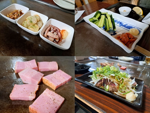 さて私的に今週は、火曜日にお好み焼だったので、今夜は酒のツマミを中心に注文しました、、、明太子きゅうり、厚切りベーコン、カツオのタタキなどなど。。。またイカの開きは、一匹丸々を、お母さんが焼いてくれますねぇ。。。うんうん、旨い旨い~☆