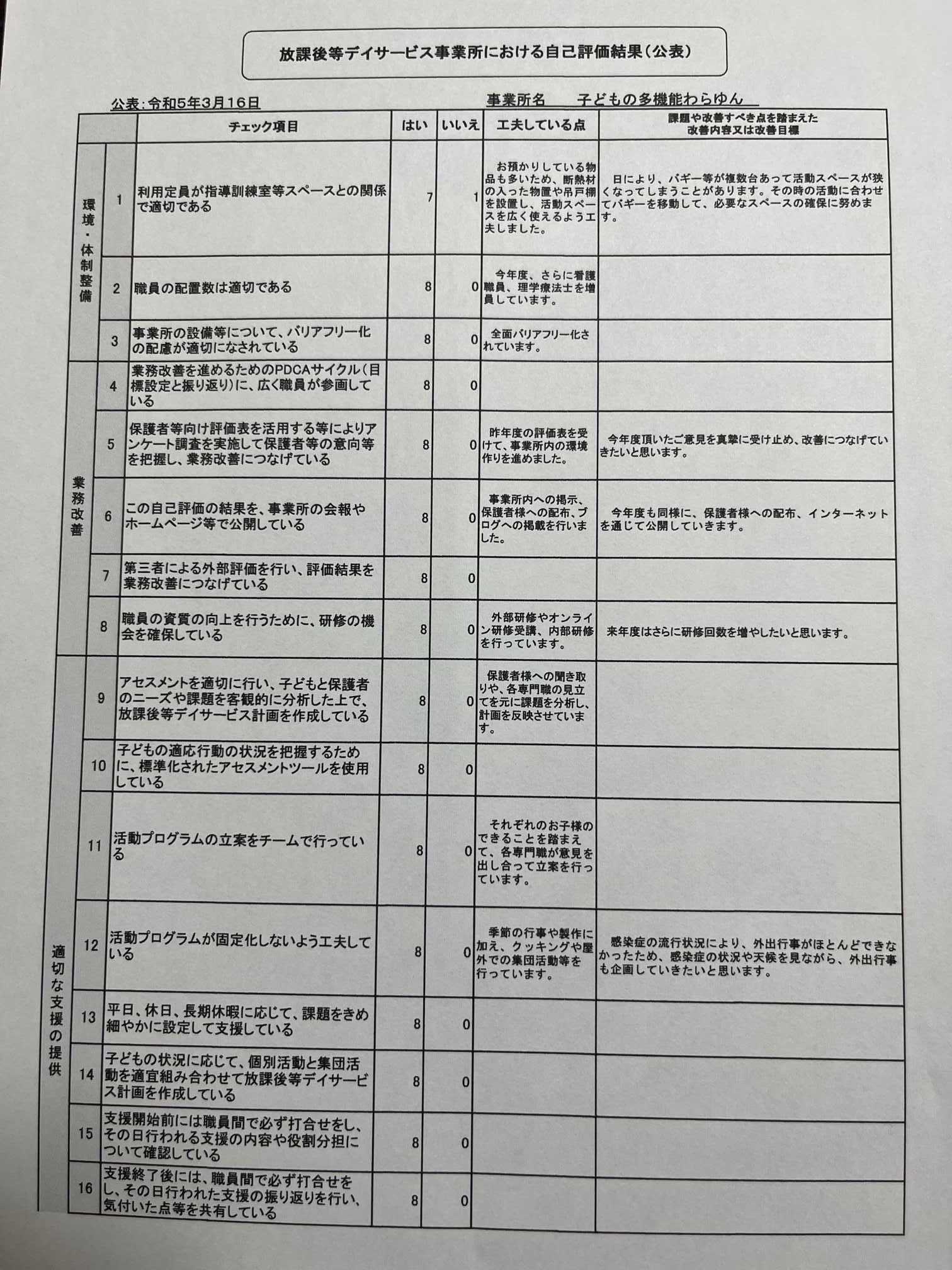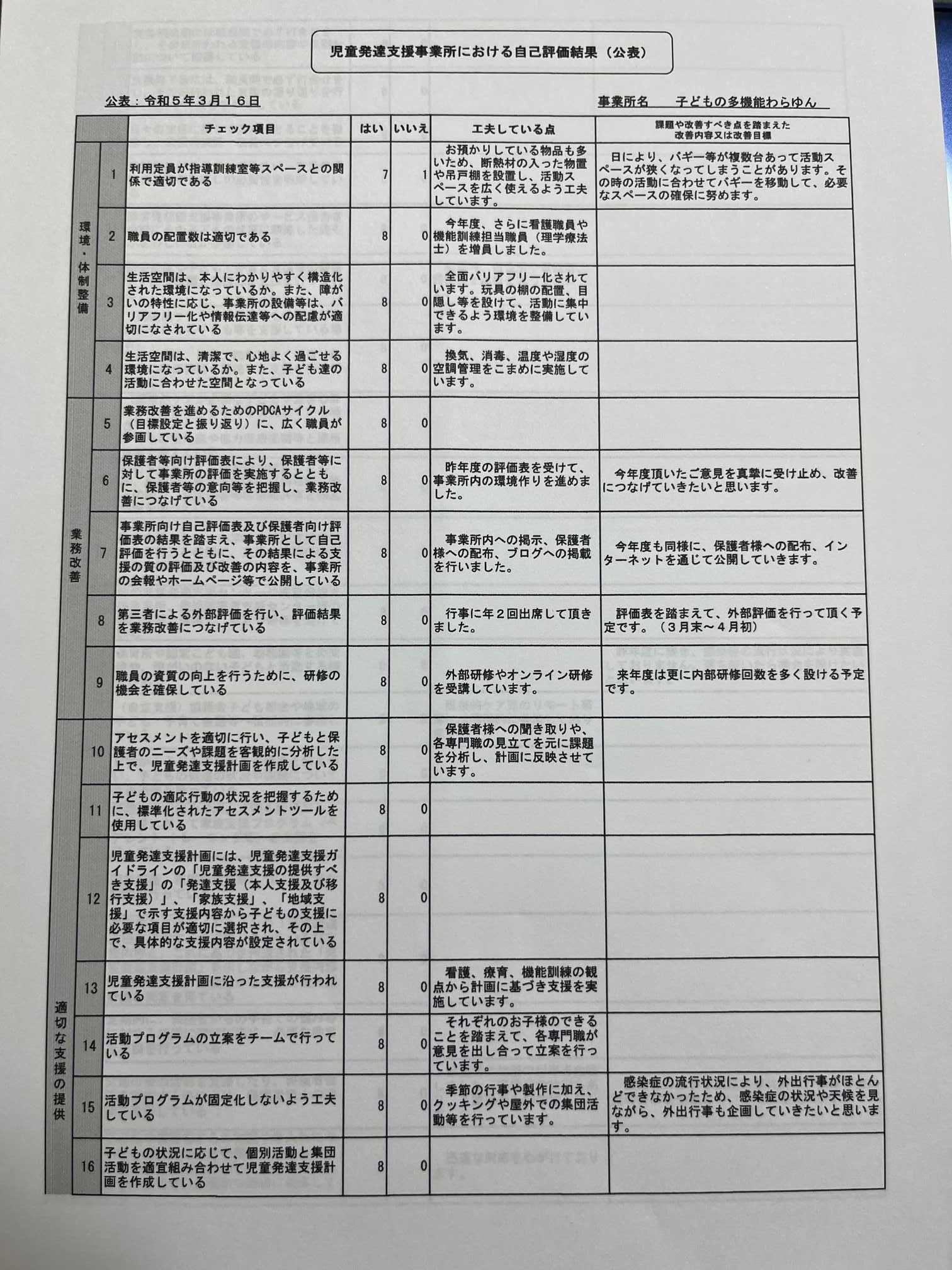 令和5年度 自己評価結果等の公表について 2024年03月22日