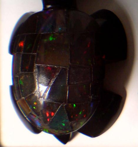 この亀は、目もオパールなんです。オパレッセンス全開です。