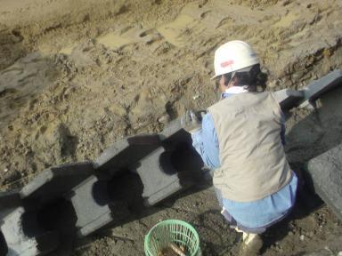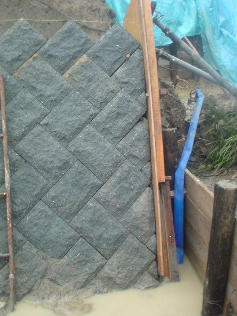 朝から現場の下見をしました。南和産業のナンワニューストンです。意外とむずかしいですよ(綺麗に積むのは)また報告します。