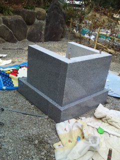 何とか特殊墓、納骨塔、完成に朝早くから 石積み、 激安墓石はこちら椿石工業 自然型ブロックはこちら南和産業 石張り、乱張りはアイエスアイサービス 住職のイメージの中の物を現実に、 今回、特殊な納骨塔の依頼で形が出来上がるのに手間が係りました、デザインも斬新ですが、バランスが大事ですこの形は九州に多く見られる物に近いです。後部に戸があり、工場のアイデアも出ています。この様に開け閉めが可能です。据付けには技術が要りますので適切な技術を持った職人さんを呼んでください。制作に3ケ月です。激安墓石セット 特別価格、98000円で販売中 間知石特別価格(個)650円で販売中 雑割ブロック特別価格(個)900円で販売中