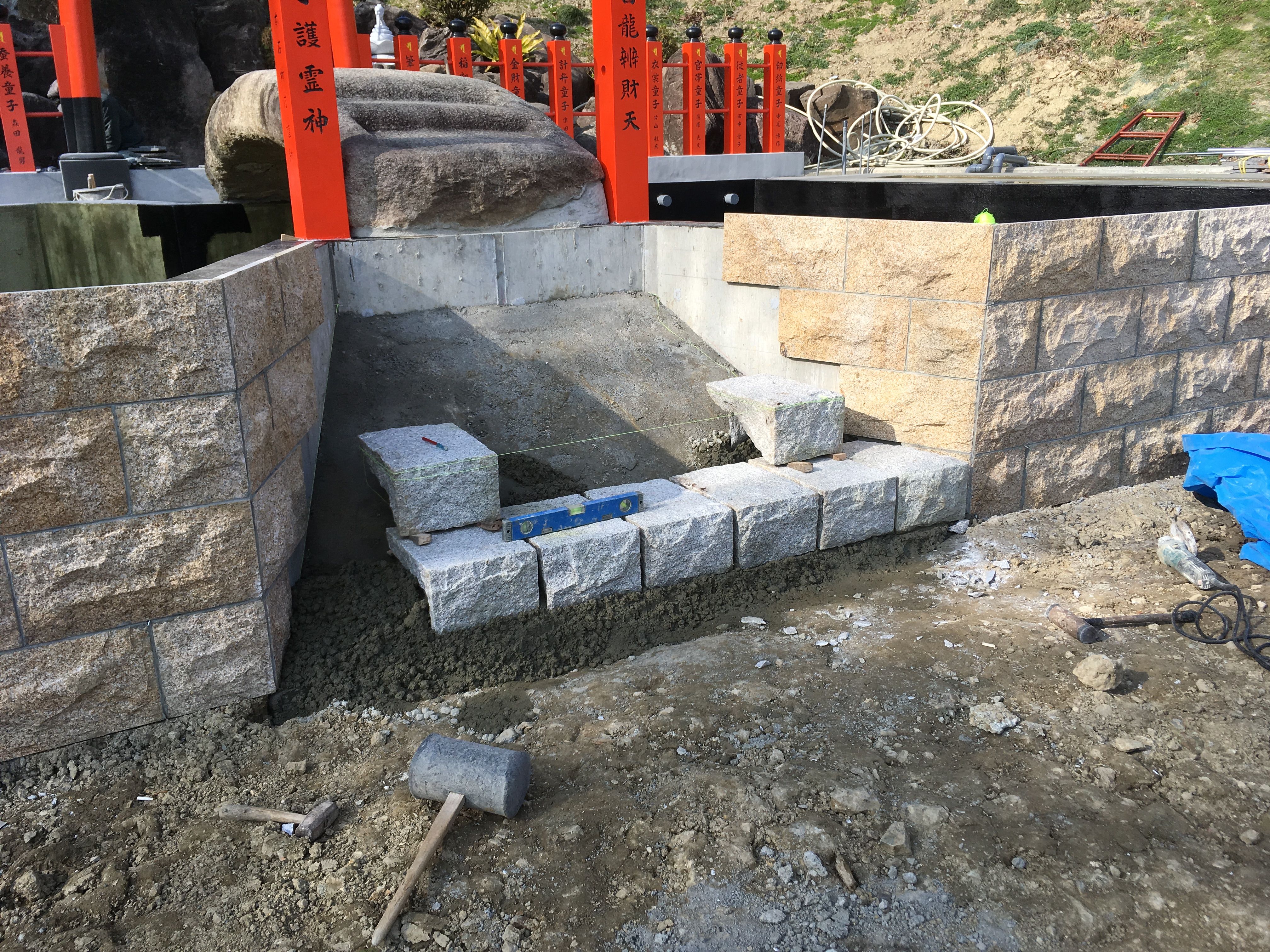 今日の仕事は 石積、ブロック積は椿石工業事務所の稲荷様からの初日の出、明けましておめでとう御座います。何時ものお寺でお手伝い、本年も良い年で有ります様に、また報告します。石積の玄翁使いを配信中若い職人の為に。
