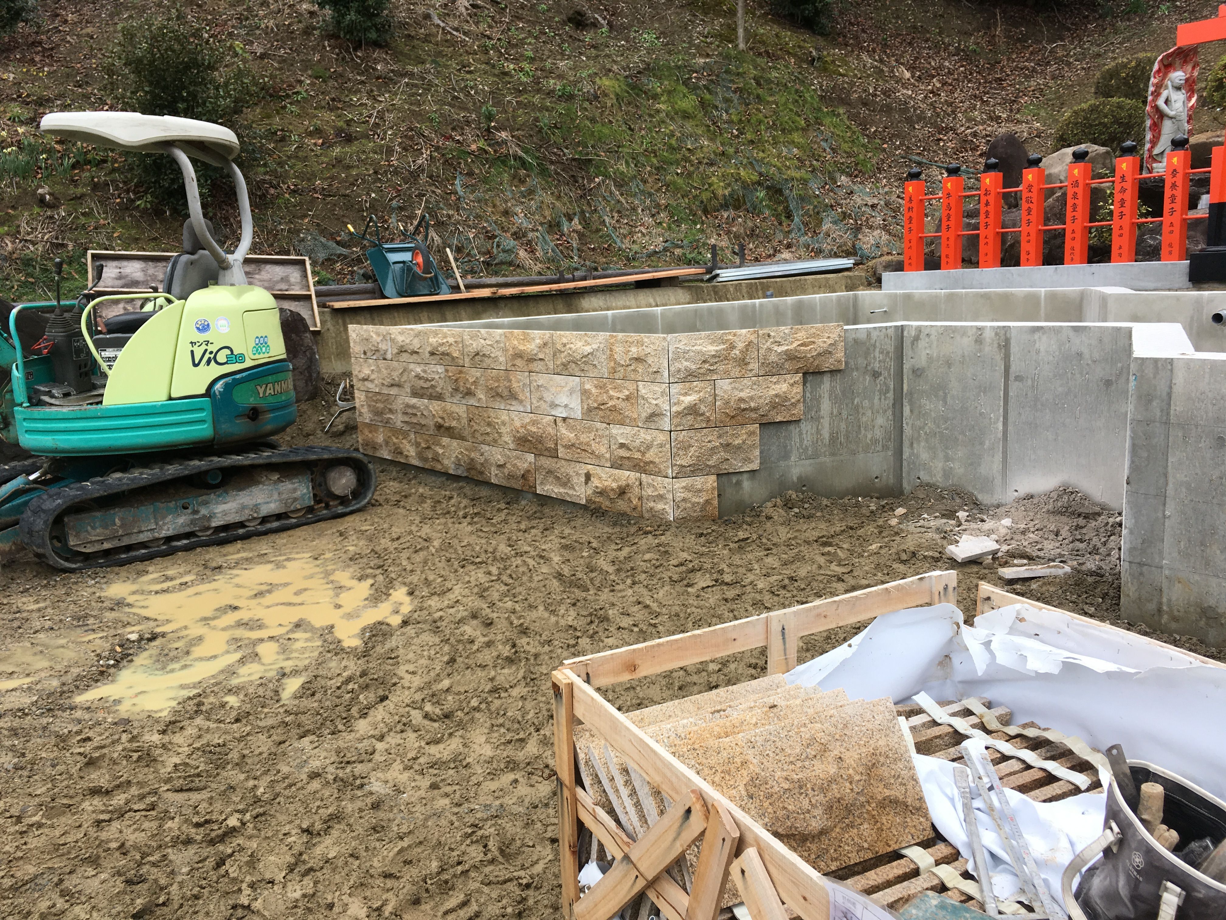 今日の仕事は 石積、ブロック積は椿石工業結構難しいです。また報告します。