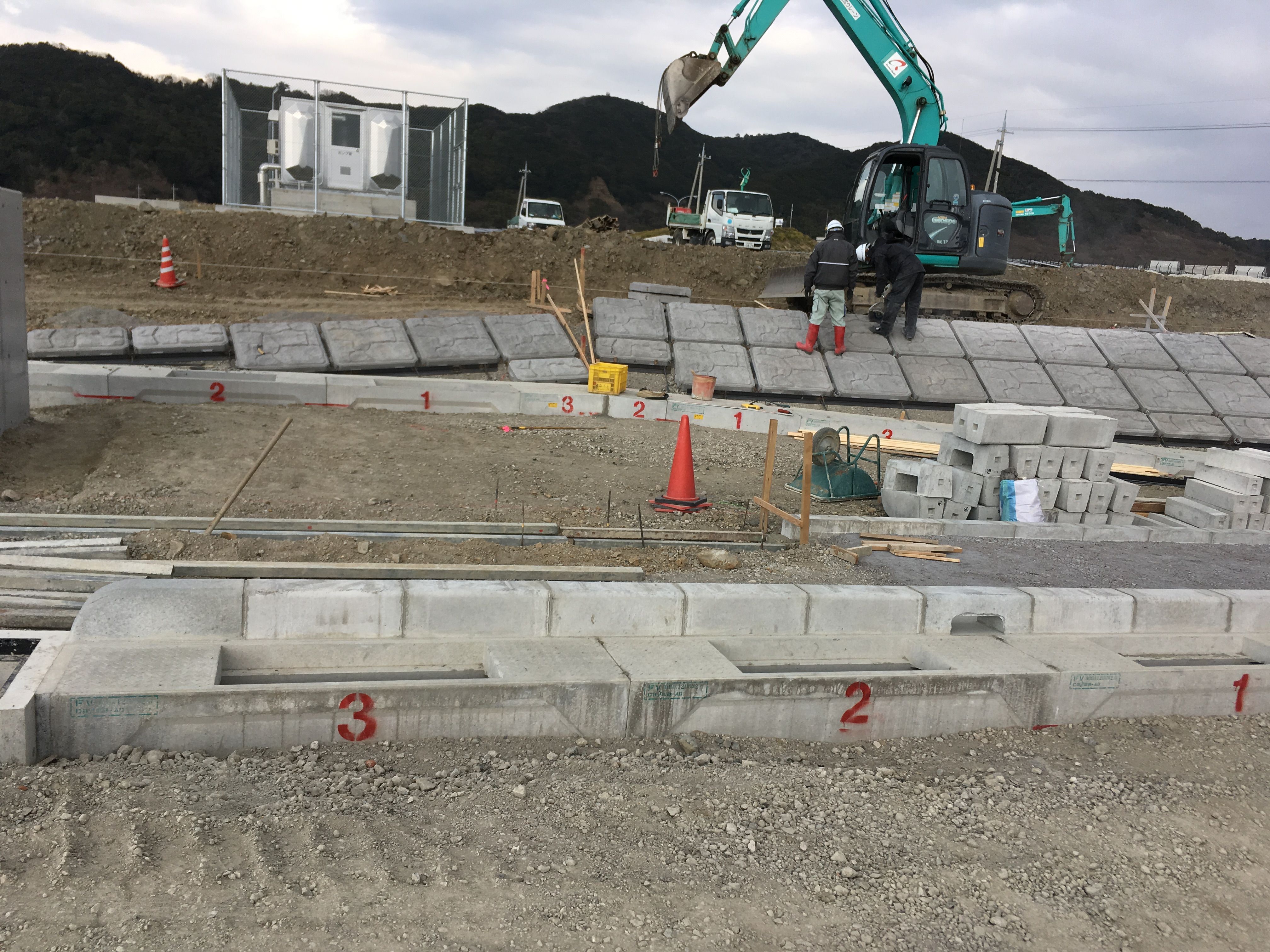 今日の仕事は 石積、ブロック積は椿石工業現場は今日からです、また報告します。石積の玄翁使いを配信中。若い職人の為に。