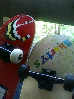 実は、せっかく持ってきていたスケートボードをアラバマのグランマのところに忘れてきてしまったんです、、、、。仕方ないのでこっちに来てから新しく買ったんですが、もちろん前回同様ブランクのデッキです。しかも!今回は初めて組み立ても自分でやっちゃいました。グリップテープを張るのも試行錯誤でしたがなんとか完成させましたよ!やっぱり自分で組み立てると愛着がわきますね。前回のはいっぱいスティッカーをはってとっても気に入っていたんですが今回はあんまりいいスティッカーが見当たらず寂しいままだったんです。そこで今回はスティッカーではなく自分でペイントしちゃいました。私って本当に影響をうけやすでしょ??ははは、、、。初めてにしてはなかなかの出来で、子供たちも満足そうです。