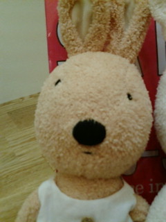 見てくださーい なんともオトボケなこのカオ癒されませんか~イット君のお友達ですほら!どうですかこのカオかわいいでしょう茶色ウサギと白ウサギのニューフェイスイットの新たなアイドルですなんかどことなく・・・誰かに似ているような・・・こんなカオの人・・・しっ・・知ってるほら!うちの孫でしたねっ似てるでしょそれはともかく新しい名前をつけなくちゃただいま大健闘中よかったらどなたか名付け親になっていただけませんかよろしくおねがいしまーす