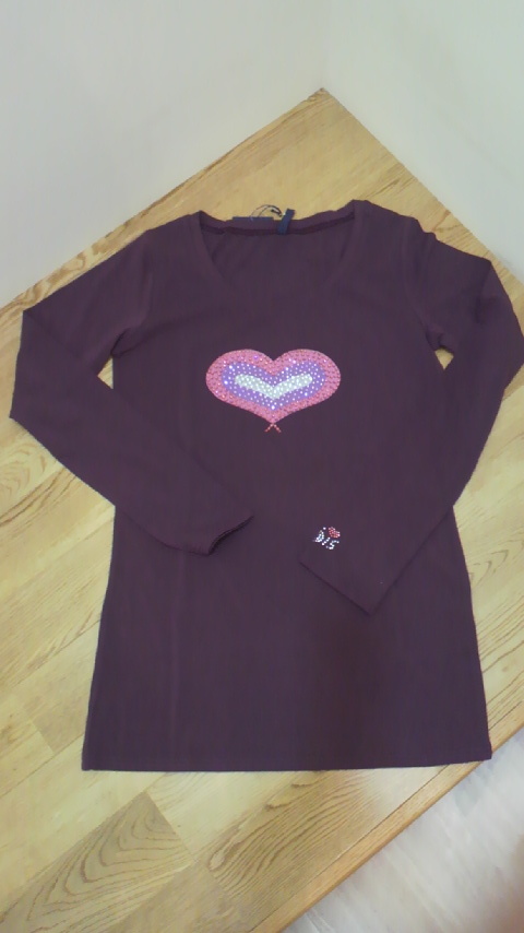 今日は、以前に、ご紹介した ラブラブハートのTシャツ第2弾 秋バージョンのご紹介です 丈の少し長い、長袖Tシャツです もう少し涼しくなれば、すぐに着れますよ ハート部分は、こんな感じ ジルコンの色が、3カラーついていて、 とっても綺麗ですよ 袖にも、ワンポイントで、ジルコン付き~ カラーは、3色 ブラック、パープル、グリーン 素材は、コットン95%、ポリ5% 着心地のよい素材です お値段は 10290円 9261円です お問い合わせは 072-722-1103 I・T fashion company(イット)
