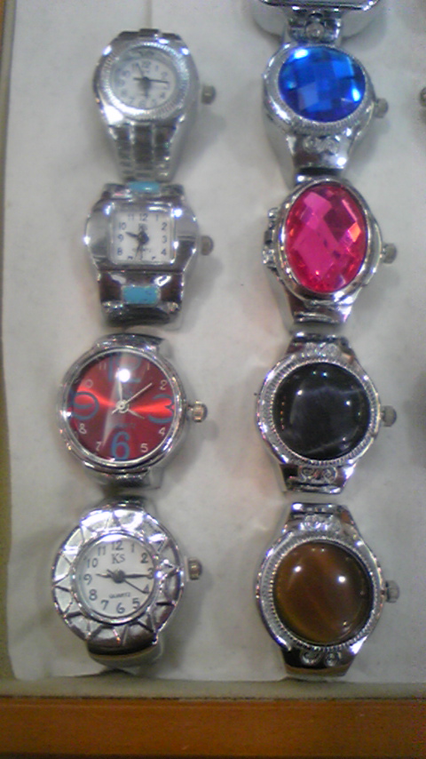 今日は、時計リングのご紹介です このゴージャスなリングたち 左側は、見てのとおり時計 右側は これも、ふたを開けると・・・ 動く時計なんです 横から見てみると・・・・ 伸びるタイプのリングなので 小指から、親指まで入るフリーサイズの 万能リングです 種類は、たくさん 画像を見てご確認くださーい プライス 1050円お問い合わせは072-722-1103 I・T fashion company(イット)