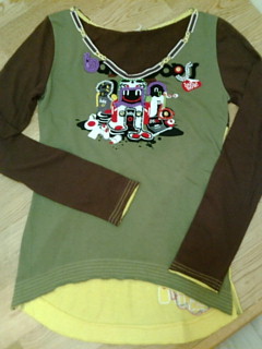 こんにちは~ 今日はとってもカラフルで豪華でかわいい秋の長袖Tシャツをご紹介しま~すとにかく凝ってます さらに アップにするとこんな感じビーズやボタンをアップリケや刺繍を使っていろいろアレンジ襟元はこんな刺繍チェーンのような刺繍で~すさらに この刺繍は背中にも・・・なんと後ろにも抜かりなく刺繍そして 裾、袖、襟はすべてきりっぱなしでなんともおしゃれ 前を短くラウンドにカットされていておみごとあっぱれです素材は綿100%内側はタオル地みたいなかんじで着心地満点細部にまでこだわったデザイン凝りに凝ったこの1枚いかがですかお値段は 16590円 お問い合わせは 072-722-1103 I・T fashion company