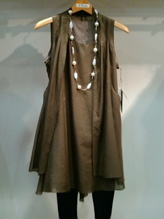 今日は、とても、エレガンスなチュニックのご紹介です前のドレープは、首から脇にかけてくっついています後ろにも、たくさんのギャザーが入っていて着ると、とても、エレガントですよ素材は綿70%、シルク30%で、着心地抜群ですお値段は17640円12348円お問い合わせは072-722-1103です