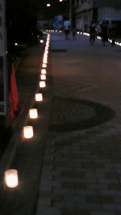 今日は、箕面のキャンドルロードと滝のご紹介をします イットの近くには、とても幻想的な場所があります 少し道をあがっていくと。。。 キャンドルが両脇にともされていて 20分くらい山を登っていくと、広場にでます 一面、キャンドルで、とてもきれいですよ よーく見るともみじの形もあり (箕面は、もみじのてんぷらが有名なので・・・) そして、1時間山に登り続けると。。。 ようやく、ライトアップされた滝に到着 ただ、携帯での撮影のため、幻想的な様子がお見せできないのが ただ、ただ残念 私だけ、マイナスイオンを吸ってきました 滝のまわりにも、たくさんのキャンドルが並んでいて 1個だけのキャンドルも撮影してみました 箕面の隅っこにある、ちょこっとしたパワースポットでした また、是非、見にきてくださいね