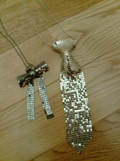 今日は、キラキラ光る 大きなネックレスのご紹介です シルバーの小粒がつなぎあわさって ネクタイの形 白いシャツにあわせると、キラキラ感も倍増です サイズは、長さ18センチ、横5センチです リボンの形 少し黒味がかったタイプのお色目ですが こちらも、違った光をはなって、綺麗ですよ サイズは縦8センチ、横5センチです プライスは 各3675円 お問い合わせは072-722-1103 I・T fashion company(イット)