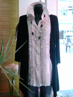 毎日毎日暑いですね路面店なのでアスファルトの照り返しがきついクーラーがキキニクイ今日この頃です今日はカーデガン付きブラウスをご紹介しまーすカーデガンとブラウスは一体型で・・・くっついてます襟はワイヤー入りなのできりっとたててカーデガンはお尻の隠れる長さでお袖は7分袖ボリュームたっぷりのフリルかわいくてかっこいい素材はコットン100% プライスは 26250円21000円 お問い合わせは 072-722-1103 I・T FASHION COMPANY
