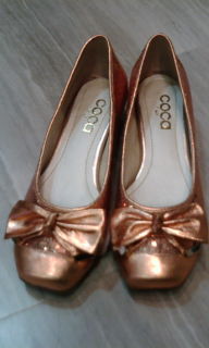 今日は、オレンジゴールドの輝きが、まぶしいパンプスのご紹介です後ろから見たら、こんな感じ小さいオレンジゴールドのスパンコールが、光り加減によりきれいな輝きを放ちますよ前から見たら、こんな感じどこから見ても、上品な輝きがきれいですよお値段は13650円半額の6800円ですお問い合わせは072-722-1103です