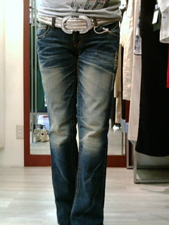 今日は、意を決して勇気を振り絞ってデニムをご紹介します初モデルは無視しておいてくださいね横から見た感じ後ろから見た感じ文字がとてもおしゃれサイズは27インチ、28インチ、29インチですお値段は15750円11025円安いお問い合わせは072-722-1103までコメントもお待ちしております