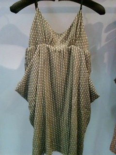 晩夏物第二弾 今日は、今年、必ず流行るモモンガブラウスのご紹介です 一見、シンプルなブラウスですがお袖の部分が、タイトルどうりモモンガのようになっていますゆったり着れて素材もコットン80%、ナイロン20%なので着心地は抜群です そして、小さな部分にもこだわっており袖口は感じですそしてバックのシルエットがかっこいいたっぷりととられた、ドレープ 広げてみると・・・な・なんと 背中がぱっくりあいていますとっても、おしゃれですよ お値段は12600円10080円お問い合わせは072-722-1103 I・T fashion company