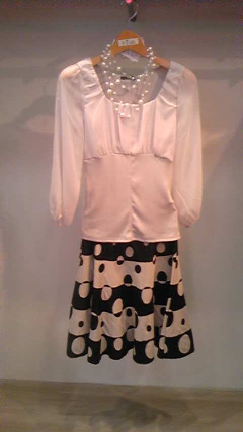 今日は、ちょっとしたお出かけにも着れる洋服のご紹介です シンプルなのに、着るとフェミニンな感じになります カットソーは、胸の下に切り替えがあり、 下にかけて、ストレッチ生地なので、 細くみえて、その上、着心地抜群です そして、袖部分が、シースルー生地なので、 豪華で、涼しいですよ 今から、少し涼しいときに、 着ることができますよ お色は オフホワイト、パープル、ブラック(完売) お値段は13440円(税込み) 続いて、ボトムは、上品なニットのフレアースカート 黒と白のドット柄が、 可愛らしさと上品さをかもし出して とても、大人かわいい感じです その上、ウエストが太いゴムになっていて、 とても楽チンタイプになっていますよ お値段は14490円11592円 お問い合わせは072-722-1103 I・T fashion company(イット)