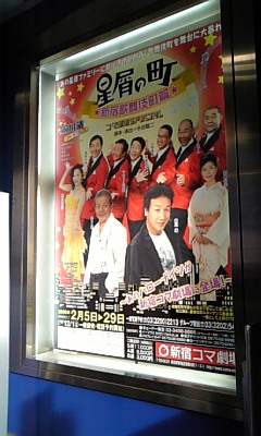 1994年下北沢ザ・スズナリで始まった「星屑の町~山田修とハローナイツ物語」は、本多劇場に場所を移し、沖縄編、大阪編、長崎編、東京編と次々に続編が作られ、ついに、新宿歌舞伎町、新宿コマ劇場に進出!『星屑の町』は、1作目のみ日本テレビの深夜放送で、2作目以降からはすべて本多劇場で観てきました。CDも2枚買いました! そう、過去に「山田修とハローナイツ」名義でCDを2枚リリースしています。(1枚は、舞台使用曲ミス・ユー他、もう一枚はアニメ「こち亀」の主題歌です。)MISS YOU発売日: 1996年10月23日ダウンロード:山田修とハローナイツ『こちら亀座の女』発売日: 1999年08月21日さて、現実とは裏腹に、劇のストーリーでは、あいかわらず売れない山田修とハローナイツの一行。(今回も元リードヴォーカルの大平サブローは欠席)東京・新宿に来たメンバーの皆を中心に、歌舞伎町の人々の人間模様を描いています。毎回、見所の一つに、劇中で歌う数々のムード歌謡がありましたが、今回はなんと、前川清が参加。歌手役で出るかと思いきや、違いました。人情喜劇としては、左とん平が出演。他の老年元やくざの脇役の方々が渋い。年季が違います。そして、高橋由美子はハローナイツのリードヴォーカルを演じ、その歌が結構うまくて感心。元ホステスで地方回りの歌手の役もそつ無くこなし、意外な一面が見れました。全二幕のうち、第一幕と二幕前半が芝居、二幕後半が「歌謡ショー」の二部構成。「歌謡ショー」の頭では、「左とん平ショー」が!知らなかったのでビックリ。懐かしい「ヘイ・ユー!!!」他1曲と短いトークを披露されました。今や、すっかり大御所ですね。それに続いて、「前川清オンステージ」こちらも独特のおとぼけトークを交えて、ヒット曲を9曲歌われ、こういうステージは初めてだったのであらためてじっくりと味わい、感激でした。※「前川清&クールファイブ」として復活!新曲。その辺の事情と一致してのコラボだったかも。前川清&クール・ファイブ 「悲しい街さ?TOKYO?」C/W「さよならは言えない」CD/カセ...しかし、「新宿区が支援している」にしては、元やくざ、暴力刑事や、ホストクラブという昔ながらの歌舞伎町のイメージばりばりの芝居。良く承認されたものです。あ、今の新宿区長は女性なんですね。製作発表でご挨拶されました。それにしても、新宿コマ劇場は、基本1か月1演目といいますから、1年に12演目しかできないうちの1本とはすごい!もちろん、前川清のネームヴァリューで実現したとはいえ、それでもこんなことが実現するとは思いもよりませんでした。実際、2088席ほぼ満席。コマは「すけだち」「座頭市」に次ぎ3度目でしたが、いづれも3割以上の空席があり(!)、それが舞台に与える影響は想像以上に寂しいものでした。今回は芝居のネタも、歌謡ショーも、高齢の方が中心のお客さんに本当に受けていて、会場全体が盛り上がり、非常に楽しい舞台でした。本来ならもう一度見たいところですが、29日で終了、残念!!※コマ劇看板。3月は都はるみ!脚本・演出:水谷龍二出演者:前川清、左とん平、ラサール石井、高橋由美子、田島令子、渡辺哲、小宮孝泰、でんでん、有薗芳記、菅原大吉ほか(敬称略)公式: http://www.koma-sta.co.jp/events/0802/index.html※ノベライズ本:水谷龍二 著・星屑の町発行年月:1998年04月☆