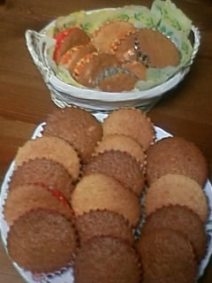 先日のクッキー作りから お菓子作りにハマりそうな気配の私です。私だけでなく、子どもたちもかな?お友達のお家に行くのに ”マドレーヌ”を持って行きたいと言い出したマリンです。そういえば 子どもたちの小さい頃は お菓子をよく作ったものです。夕食後 マリンと頑張って作ってみました。1回の量が少なかったので2度も…材料: 卵 中4個 薄力粉 150g バター 150g 砂糖 140g べーキングパウダー 小さじ1 レモン汁 小さじ1 レモンの皮をおろしたもの 少々こんなに沢山 誰が食べるんだ~~って感じですが、かごに入れてある分はお友達のおうちにもって行きました。残りは 翌日にはきれいになくなっていましたよ~ちなみに色の濃いのは1回目、薄いのが2回目の焼き上がり。2回目の方が上手に仕上がったというのは言うまでもありませんね。お友達のおうちへは 2回目のを持っていってますもうすぐ4月、中学が始まったらまた 出来なくなりそうです。あと1週間で何回お菓子作りにチャレンジすることになるやら…そうそう アクアもお手伝いしてくれたんですよ。(マリンより器用かも知れません…)