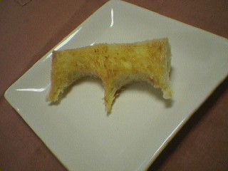 結婚してから、、ずっと気になることがある。写真でとってみた。夫のこの「遠慮の塊・・・?もったいないやんか・・パン」だ。いっつもこの程度残す。不思議?へたも切ってるのに残す。1斤150円の食パンでも。ちょっと高めのパンでも。そして、私が焼いたパンでも。この、、程度残す。これ、、なぜ???心の中でいつもつぶやく。『小さい頃ご飯粒って一粒も残さないように頂きましょう』って育てられたでしょ!って。パンも同じなのに・・・今日も気になる。。。