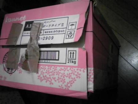 いつも遊びに来てくださっている方には申し訳ありません。今日は、業務連絡です。お友達はスルーいてくださいね。私は仕事柄、コピー用紙を楽天で注文します。昨夜届いたのがあまりにひどかったのでのせておこうと思います。お荷物は2個。一つは、ゴミ袋などを注文したもの。その凹みも凄かったですが(お化粧品で言う箱つぶれ)もう一つはコピー用紙。 この状態で届きました。このガムテープ何?おニューコピー用紙ですよ。上から写した物。 箱を開けて中。中袋の角が避けていましたので、そっとあけてみました。 雨に当たったのか、少し紙が波打っています。そして・・・外箱からの傷を発見・・・その傷は中の用紙まで届いています。 コピー用紙が傷ついています。昨夜、佐川に電話で状況を説明しました。今日、連絡があるそうですが・・・また、これは発送段階でこんな状態はありえないように思うのですが・・コピー用紙の状態によりコピー機が紙詰まりの原因になります。機械の故障の原因になりますので、ショップさんにも連絡しますが、連休休みですので、明日になると思います。紙が必要だったのでちょっと困っています・・
