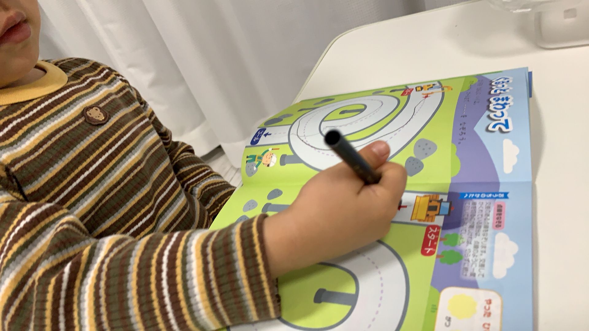 鉛筆持ちで初めて迷路の練習。
