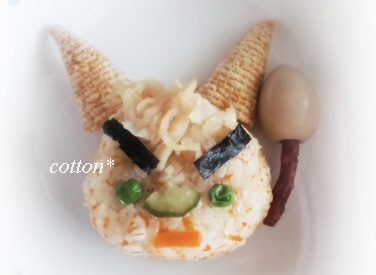 今日は節分ですね*保育園でこんな可愛い給食でたよ~とムスメが大絶賛の 「おにライス」 ツノは、とんがりコーン前髪は、切り干し大根鬼のこん棒は、かりんとうと うずらのたまご 約百人分3人で作るの大変だったろうなぁ。保育園には頭が下がります。
