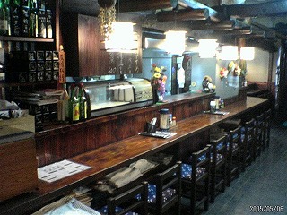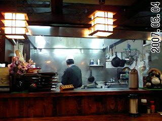 この後ろ姿が店のおやじさんです。料理の腕はすごいですよ(^o^)