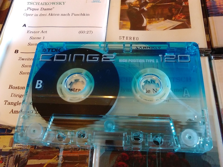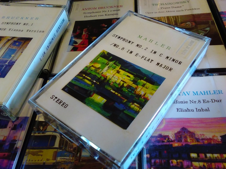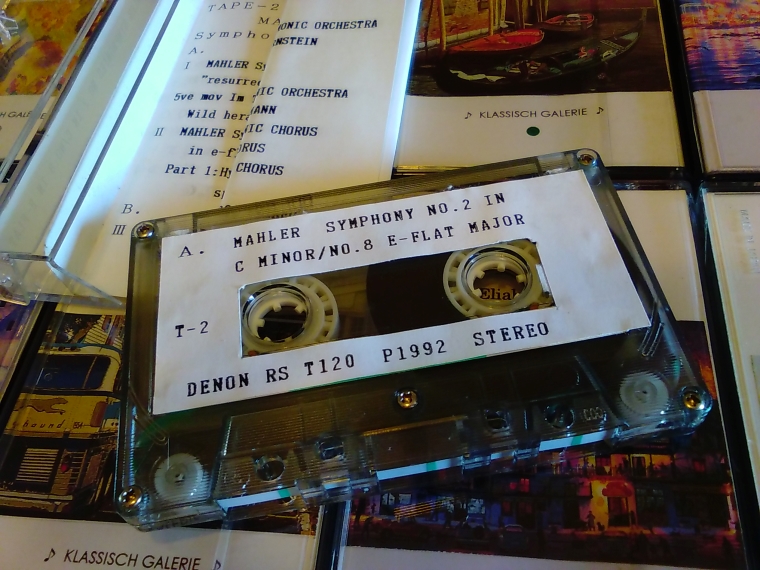 120分テープなら。ブルックナーもマーラーも余裕で収録出来て、しかも余るくらい。↑のテープは1992年製です!マーラーの千人の交響曲が入っている。第二楽章だけで50分くらいあったから、120分テープでないと対応不可能だった。ちゃんとカセットにも表示を貼り付けているでしょ。