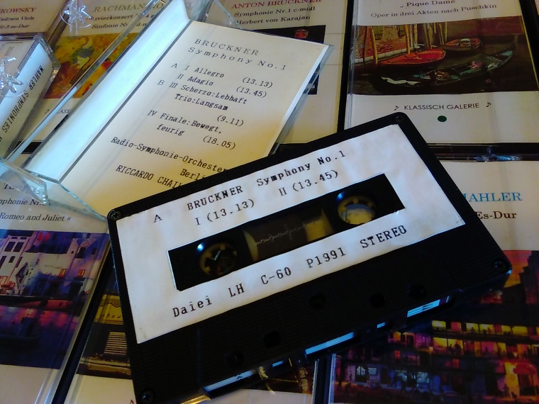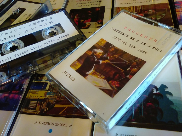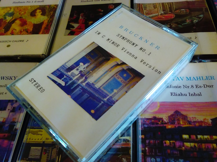高校時代、90分テープが手に入って作ったブルックナーのカセット。ワープロ感満載である。次第にマーラーを聴き始めるようになると、90分テープでも足らなくなって来た。この頃は、表記が一部日本語である。