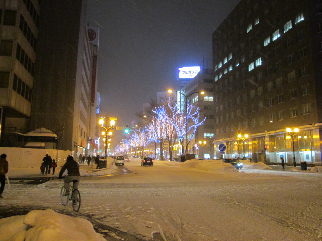 今年もあと僅か、年末年始は帰省するので彼女と会うのも最後だ。この時季の札幌の日暮れは早い。早いなんてもんじゃない。もう三時半ぐらいから暗くなり始める。三越で食事と云っても甘々なパンケーキを食べまくり、大通公園でやっているホワイトイルミネーションを見に行く。例のジンクスとやらは承知しているが、何となく吸い込まれるように見に行きたくなるんだから怖い。別に喧嘩することなく見学は無事終了。結局、ただのイルミネーションを見ているだけで、何が危険なのかよく分からん!地下鉄大通駅前で彼女と別れた後、拙者は暫くあちこちを歩き回っていた。街灯とイルミネーションが仄かな雪明りを保っている。既に不思議でも何でもない景色ながら、時間の許す限り見惚れてしまうものなり。とにかく静かで静かで12月29日早朝、新千歳空港は閑散としていた。是から東京方面に帰省する人間など少ないのだ。誰もいない飲食店街に、古い札幌市電のオブジェがある。運転席からの景色も寂しい限りだ。今回は、全日空の株主優待でプレミアムクラスに乗った。41,770円が22,970円なのだからお得だが、去年行われた公募増資でうんざり感を味わっただけに、嬉しさも中途半端。「京都一予約がとりにくいと云われる人気店」の弁当が出たが、おままごとかミニチュアのような小さな弁当だ。揺れる飛行機で熱い雑炊をすするのがこんなに大変だとは思わなかった。弁当を片づけ、日経の残りを読んでいるうちに、機は早くも着陸態勢。シート備え付けのスリッパは使わなかった。株主として経費節減に協力せねば。さて窓からは、霞ヶ浦と共に茨城空港が見えた。開港当時、あれほどマスコミに叩かれ、バカにされた公共事業は無かったが、世の中やってみなければ分からないことが多い。札幌-神戸間は2往復が就航、そのうち1便は那覇まで行ける。上海便も盛況で、台湾からのチャーター便も盛んに発着している。意外に健闘しているではないか。北関東の実力を侮ってはいけない。羽田からあれこれ乗り継いで、やっと着いた相模原。相模大野駅前の再開発事業は大詰めを迎えていたが、工事は年末でお休みなので、周囲は極めて静粛なり。そしてこのまま静かに一年が終わりを迎えようとしている。