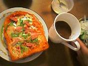 昨夜の雨は凄かった…。雷も恐ろしいほどビカビカ光ってたよ~。バケツをひっくり返したような量の雨は、いつもはすぐにやむのにとどまる事を知らずザンザカ降り続き、側道は川になっておりました。今朝は雨も上がっていましたが、先ほどお昼に外へ出てた方の話だと昨夜ほどではないけれど雨は結構強く降っているとの事…。早く帰っていいよメールが回ってこないかな~と少々期待してますが、その前に「学童」から引取りメールが来るかもな。厳しい~!今日の朝ご飯はピザトーストと野菜サラダでした。