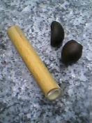 オクトーバーフェスタのあとはオヤジフェスティバル(笑)…と言っても、オヤジが狂喜乱舞する(怖っ!)フェスティバルではなく、お父さんたちが主催する、オヤジの会主催で行われた、地区のお祭りでーす。土曜日は雨模様の1日、午後水泳教室へ行っただけであとは家でゆっくり。昨日も台風の影響で風が強かったから、家でお絵かきしたり本を読んだりして過ごそうかな~?と思ってましたが、オヤジフェスティバルのチラシに手作り遊びが満載!と書かれてあったのでやっぱり行ってみようか?と強風の中出かけてきました。砂金探しに、簡易ローラーコースター、竹笛、椿笛、竹鉄砲、アルミパイプをコイル状に曲げたものにロウソクを付けそれを動力とした船(わかりにくくてゴメンなさい >