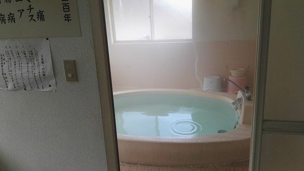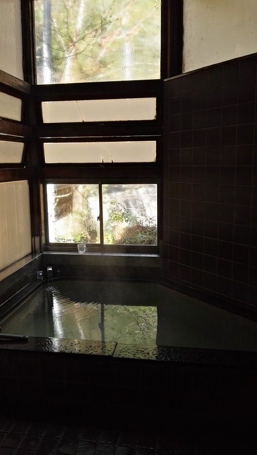 12年振りのお湯でしたが、変わりなく、滑らかでつるつるのお湯。加熱した鉱泉の掛け流しで、掲示されていた昭和33年の折橋鉱泉の分析によるとpH9.8と。前回は、犬と猫に歓迎されましたが、今回は、猫の送迎でした。軒下に大きなハチの巣がありましたが、宿泊はやめたのかしらん。