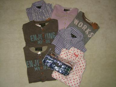 今日は眼の検診で都内へ。旦那さんと二人で出かけるつもりだったけど、出かける直前に娘ちゃんと息子くんが喧嘩をしてしまい、グズグズモードだった娘ちゃんをおいていくのは可哀想なので、一緒に連れて出かけてきました。高速道路もすごく空いていて、都内まで約1時間で到着。最初にナチュキチに食器を買いにいく予定だったんだけど、友達に頼まれた、クリスピー・クリーム・ドーナッツへ今日は休日だったので1時間も並んだよ・・・寒かった・・。友達の分と我が家用にも買えたので満足でした。それから、旦那さんと娘ちゃんを連れてナチュキチへ。この間は平日にいったので空いていたけど、今日は激混み。お皿などなど30点ほど買ったけど、1点100円なので全部で3000円。感激です(笑)スタジオMも好きだけど高いのよね・・。やっぱりナチュキチいいわ。眼科検診までまだ1時間もあったのでその足で、FITHにいちゃいました。見るだけと思いつつ、かなり気になるものが入荷していて・・。試着までさせちゃって・・・(笑)結局2点ほどトリオキしました・・・・。ストール、実物メチャクチャよかった。娘ちゃんがすごく気に入ってね。本人はグリーンがいいといっていたけど、私と兼用するということでクロに。でもこのクロがすごくいい色だったよ。濃いカーキみたいな感じで。最近娘ちゃんストールが好きなんだってさ。上戸彩ちゃんが出ていた「アテンションプリーズ」でストールをかっこよく付けていたのが印象的らしい。「ストールってアテンションプリーズでキャビンなんとかがつけていたよね~。あーいうのだったら欲しい」って昨日いっていたのよ。さすが女だわーって思った瞬間でした。レイヤードワンピはこれは本当に実物可愛いかった。試着して悩んで帰ってきたの。だって白もよかったから。でも白の130は予約完売。ショップの方も「白は本当に真っ白だから着せるの勇気いりますよ」と言われて。帰り道に色々考えた結果、カーキがよかったので電話してトリオキお願いしちゃいました。ストールも今日は旦那さんがいるということで次回回収予定です。レイヤードワンピにデニムPあわせたら本当に可愛いよ。今の時期中にボーダーかドット系のタートルあわせてもOKだったよ~♪なので明日から働かなきゃね!そして最後に眼科にいって術後1ヶ月検診。両目とも1.5見えていました!本当によく見えるので、毎回いっているけどやってよかったよ♪また来月検診です。