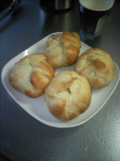 今日は2回目の日記です。金曜日の夜はほとんど一睡できず(確定申告の書類などを作成していたので)土曜日は昼間寝ていようと思っていました。娘ちゃんはクラスのお友達のところに朝から夕方まで遊びにいってしまい(お昼も一緒に食べる約束していたんだって)息子くんだけなので、さー昼寝すっかなーって思っていたらピンポーンってチャイムが。お向かいの子供が遊ぼうってきたのです。雨降っていないし、外で遊んでおいで~っていって息子くんを出したのですが、なぜか、庭先で声がずっとしているのよね。外見ると我が家の庭で3人で座り込んでゲームしているのよ「公園いかないの?」っていったら「いかなーい」って3人とも声揃えていうし。仕方ないので3人とも家に入れてあげました。お向かいの子供に「ママは?」って聞いたら「昼寝している」というので、あ、どこも一緒だなって思っちゃった(笑)おやつまだ食べていないっていうので、冷蔵庫を見てもおやつになるものなし・・・だったので、息子くんに牛乳と重曹を買ってきてもらい、黒糖蒸しパンを作りました。その画像、昨日撮りわすれて、また作ったらアップしますね。そんなこんなでお昼寝出来ず、昨日の夜は10時すぎには寝ていました。朝は10時半に起床(笑)ひっさいぶりに超寝坊が出来てスッキリしちゃったよ。朝食は旦那さんが準備してくれていたので、助かりました。お昼兼おやつで今日はフランスパンを作りました!中にチーズが入っています。家で作ると冷めてもかたくならないから食べやすいのよね~。明日の子供たちのオヤツの分も作りました。我が家は、いつもおやつはおにぎりなの(笑)お菓子だと、腹もち悪いみたいなんだ。なので朝仕事行く前に必ずおにぎりを握っていきます。ただ最近ちょっと飽きちゃっているみたいなので。時間のあるときはなるべく蒸しパンとか、フランスパンを焼くように努力しています。