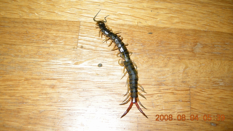 今の時期、長男(高3)も同じ部屋で寝てます。理由は簡単。彼の部屋にクーラーがないから。やっぱ涼しい部屋で寝たいもんね。さて、普段は寝起きの悪い長男が「ウオーッ!!!」っと叫んで起きました。それも五時半ごろ。ビックリして「何があったんだ!?」と聞くと「首の辺りがモゾモゾしたんだ」との事。そしたら。。。枕元に蠢くものがいました。即、抹殺。刺されないで良かった。でも、こんな起き方は心臓に悪いぞよ。。。
