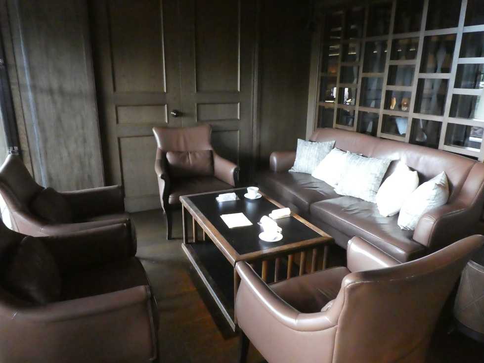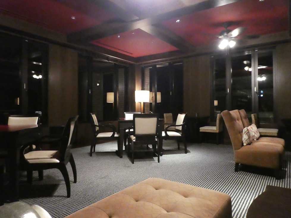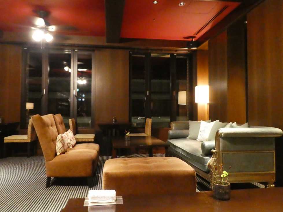 クラブラウンジ内部は、このようにソファが並んでいて照明はやや暗めの落ち着いた感じとなっている。