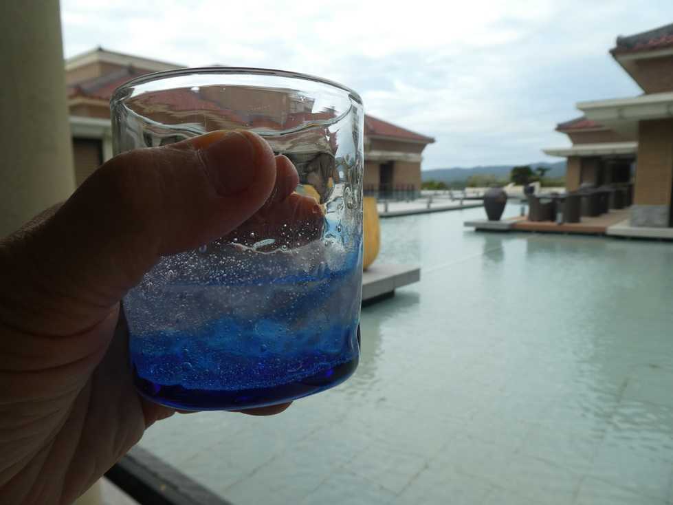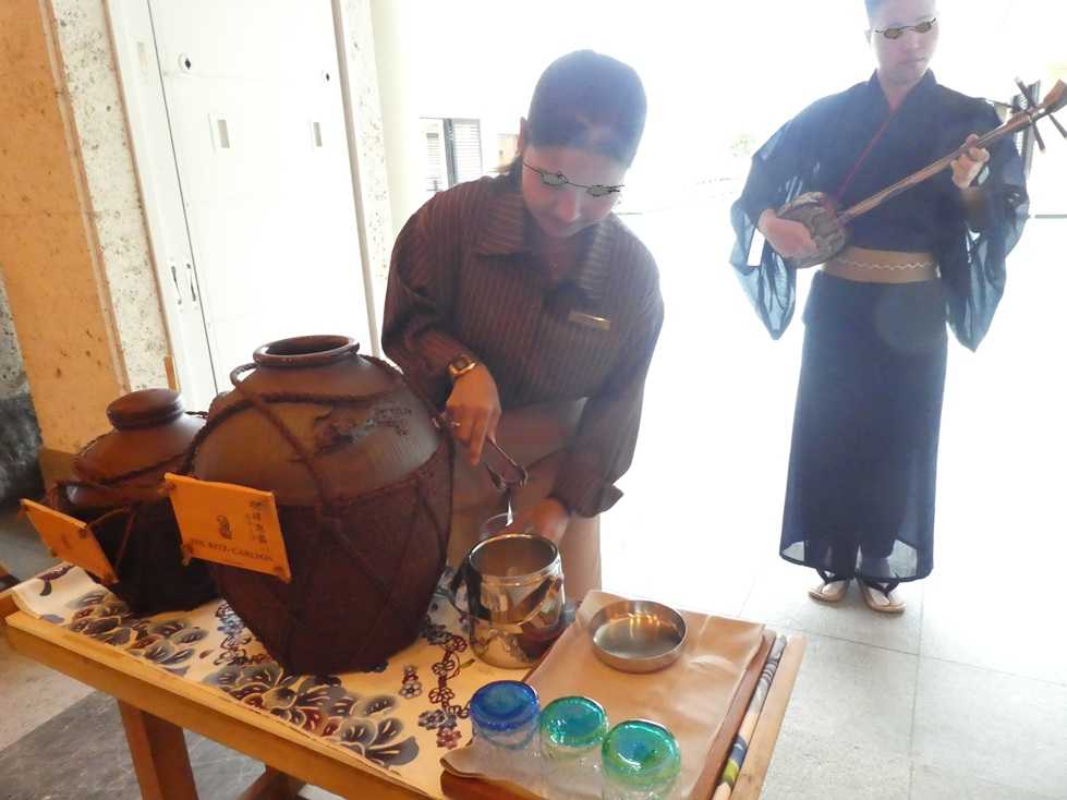 以前は、このウェルカムドリンクはシャンパンだったそうだが、最近は泡盛に変わったらしい。 書き込みには「質が落ちた」と嘆く方々も居るようだが、拙者はむしろ沖縄らしくて良いと思う。 三線の音が聞こえる。
