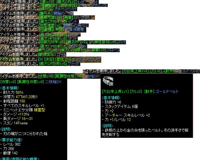 どーも!あけましておめでとうございます!不定期ですいやせん!!ちょと忙しかったり、ちょとやる気が無くなってたり、ちょと課金切れてたりで・・・ちょ~マイペースでソロしてましたんで・・・どんまい!!あ、それと剣士を物理に戻して前流れが居た330制限のEndに入りました!!まぁまだ2回くらいしかgv出てませんが久々の剣士は中々に難しいね!w剣士のPSがガタ落ちしてますorz4フレとか花でいけるべぇ~とか思ってたら花2スロット連打でも間に合わず・・・0.90剣で5フレなら大丈夫だべぇ~とか思ってたら合間合間に横なぎ?だっけか最初のスキルをちょくちょく・・・どっちにしろ心臓じゃねーとキチーじゃねーか!!物資代DTとあんまかわらなそうwwまぁモリ2で狩ってりゃ心臓ザクザクなんで別にいいですけども~!!ファッキンだなぁー!とまぁこれを教訓に次からはダメ1秒剣で6フレ主体のいざってときにダメ0.75剣にチェンジして4フレ心臓!!こうしようかなっと思います!!えー剣士の皆さん、こんなんしか考えられませんでしたけど何か良い方法?とかやりやすいスタイルがあったら教えてくだせぇー><ふまだまだだな・・・!まぁこの話は井戸端においといて・・・ここ一ヶ月のマターリドロップです!!背ばっか落ちますwwヒーローとかスタチャとか槍DXU期待してますよ!!カミオンさん^^そして左下の槍の風lv9が地味にあついっす!!ダメ重視のソロには向いてないですが即死ソロやサバソロで地味ぃ~~~に良い!!・・・と思いますw一応銀行に置いといていつか使うはずです!!・・・と思いますwで、右下の腰は・・・どーなんすかねぇ~!良さそうだけど案外そうでもなさそうな・・・wどなたか相場おね!!wで次にUのドロップ!!と最近の狩り風景!←は最近サバ狩りにはまってるんでその時の様子を・・・で、どーなんだろ?wこのlv帯での火力とか全然わからないですし知り合いも少ないんでよくわからんです!!まぁ光ツインとかの方々は色んな意味でレベルが違うので比べても意味ないっすねwまぁそれも井戸端に置いといて・・・なんでヒーローが出ないのか不思議でしょうがない^^;でも確か~そろそろ来るっぽいって近所のおばちゃんが言ってたわ~!・・・確か!!おばちゃん信じと~よ!!むっちゃ信じと~よ!?・・・寝不足と二日酔いで何書いてるのか良くわからなくなってきましたがまぁグダグダはいつもの事なんでご愛嬌ってことでwで、次はここ最近購入した品々をー!まず回避敏比水抵抗足!まさにGv用って感じというか狩りの回避用というか・・・実に素晴らしい品をゲット!これ増幅したらGvこれで出よう!!ちなみに40mという個人的には激安価格!!次は左下のダメ致命打槍!!これ12mで購入したんですが・・・かなり高性能じゃないですか??w確か致命打とかって重複するって話をどっかで聞いた覚えがあるのでこれ装備したら剣士並みにクリ出るんじゃないかなぁ~??装備lvまでまだ微妙にありますがこういった目標があるとlv上げも頑張れますよねbb右上の運比移動足はこの間[運比1/3移動20%全異常11%]足を売れねーだろーっと思って7億で置いてたら売れちゃってたので急遽足が必要になり、まず運比1/2足を購入!!そしたらその2日後くらいに右上の運比移動足が550mで置いてあったのでとりあえず即購入!!これから再構成するリスクとかを含めてどっちの足にするか決めていきます!!それで最後にー右下の箱バン+ダメ複合剣!!剣士は安く済まそうと思ってたんですがやっぱりやると入れ込んじゃって・・・><箱バン買う予定無かったんですが・・・箱バンで丁度フレームがあがるのでつい・・・wまぁこれで剣士はとりあえず装備完成!・・・かな?wまぁ神装備なんて無理なんでこれ以上となると数億とサラバしなければいけなくなるのでやめときやす!!あぁ地味に貯めた金がどんどんと~・・・wまぁ使ってナンボだべ!!・・・っといいつつ節約節約っと♪あぁP欲しいなぁ~w