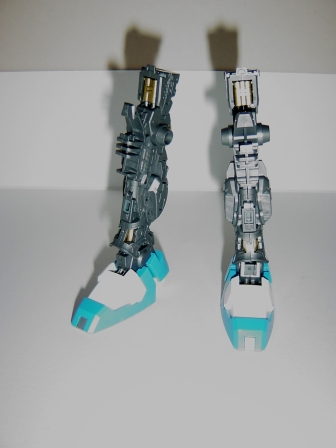 太ももの付け根まで作りました。も~Hi-νさん、変形もしないのに部品数多すぎっす。稼働のシリンダーも片足だけで3箇所あり塗り分けるのが大変です。後姿です。朝、まだ中途半端な明るさの時にフラッシュたいて取ったのでよく映ってませんねぇ。ヘタクソです。こうやって動かすと、あちこちのシリンダーが同時に動くので、感動ものです。しかしこのHi-νさんは、思ったほど大きくないですね。以前作ったνガンダムさんは足を作っている時からでかかったですからね。まあ、飾るのに場所をとらなくて助かるんですが、ファンネルがついたらどうしようもないでしょうね。ガンプラルームへ戻る