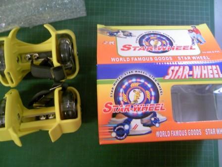 10/14は我が家の愛ちゃんが誕生日。 え~~っと...何歳だっけ? 小2だから8歳かな??? 半年ほど前からお友達に影響を受けたのか 「○○ちゃんみたいにローラースケートがほしい!」 って、ずーっと言っていたので 買ってあげました。 例によって例のごとく、ヤフオクで格安?にゲッチュです。 こちら なんでも靴のかかと部分に取り付けるだけの 簡単装着~~~♪ 普通のローラースケートよりは安価だし つま先にコマが付いていない分、コケにくいんじゃないかな? おまけに、このローラースケート コマのとこがコロコロ回ると 中に発電装置があるらしく 何色ものLEDがピカピカ光ります。 「○○ちゃんのローラースケート、進んだら光るんよ」 って言っていたのはこのことか!! 多分同じようなものなんでしょうね。 さっき僕もコロコロ転がしてピカピカ遊んでました。 見事にLEDが鮮やかです。 送料手数料込みの1400円。 子供だましとはまさにこのこと! 今年も安く上がったぜ!!!ベイビー で 今晩は家族4人で焼肉へお出かけです。 お父さんの稼ぎが悪いから なかなか焼肉も連れて行ってあげていないから 今晩は楽しみにしているようです。 んでもって帰ったらケーキを食べるそうです。 どんだけ~~~♪