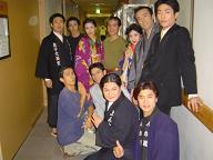 「おはようございま~す」「初日おめでとうございま~す」明るい元気な声で楽屋は大賑わい。役者さん独特の世界で、お互いに全出演者の楽屋を挨拶回りに伺うのだが、舞台前の緊張感を解き、みんなで気持ちを一つにするのにはいい習慣だと思う。一昨日の日記帳で演劇は双方向のコミュニケーションでないような表現をしたが、これは訂正したい。今日の本番舞台に立ってみて、リハーサルの時とは違う観客の方のエネルギーというか、反応次第で舞台は作られることを実感した。予想せぬ部分で拍手をいただいたり、笑いあり涙ありで、この生の反応次第で台詞やパフォーマンスが大いに違ってくるのだ!また、これこそが生の舞台の醍醐味であり、役者冥利に尽きるといったところであろう。今日は私の母親にも観劇してもらい、久々にいい芝居を観たと好評であった。手前味噌ながら自分でも自信を持って推薦できる作品だ。だが、明日の一公演が最終であり、おそらくこのメンバーでの興行は最後となるであろう。みんなで悔いのないよう、最高の演技をした後、美酒に酔いしれたいものです。すさまじいエンドレス宴会が待ち受けています。