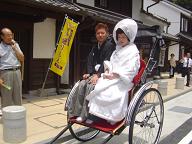 臨時応援要員として出向いている得意先の筥崎宮花庭園内のレストラン迎賓館。業務終了後、T支配人と共に初めて飲みに行き色々な話に花を咲かせる。思えば、こちらのレストランが婚礼人力車の提携先第一号。当時は別の方が支配人をされていたが、初めて飛び込みで営業に出向いてから提携契約書を交わし、最初の依頼を受けるまでに1年3ヶ月かかった。実績も信用もないところから創業するとは、まさにこういうことだと思い知らされた経緯であった。でも一途な「思い」だけで、最初は名刺も持たず飛び込んだ、あの勇気があったからこそ今日があるわけで「初心忘るべからず」ということを改めて肝に銘じておきたい。最初の頃は木製の踏み台も木がむき出しで、使用しているうちに結構ガタがきて、乗るとグラグラ動くような代物であった。そのうち現場の生の声を取り入れて黒く塗装し、更に赤い毛せんを貼り付けたりと進化していった。おそらく日本中でこの二段式踏み台を使用しているのは私のところだけであろう。自作のものは手間はかかるが最も耐久性があり、使い易い。現在使用している人力屋オリジナル踏み台をアップしてみました。