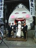 本日午後3時からの予定であった婚礼前撮り立会い。天気予報では午後からの降水確率が高いということで、急遽午前中に変更。が、ホテルへ移動中に早くも雨が降り出し、神社への道中には土砂降りに。写真撮影が目的のため、雨天の場合はどうしようもない。困った時の神頼みではないが、参拝して様子を伺っていると、先ほどまでの雨が嘘のように上がって晴れ間も見え始めた。撮影は無事終了し、ホテルまでの復路も雨に見舞われずに済み、超ラッキー!来月節分の日に正式にご夫婦になられますお二方、誠におめでとうございます。櫛田神社では毎年恒例の節分祭に備え、各門にはすでにお多福の面が据え付けられていた。何だか「福」を授かりそうな縁起物ゆえ毎年大勢の人でごった返す。下の写真のような記念撮影ができるのは博多ならではの風物詩かも知れない。四季折々の風景の中で、更にご用命いただけるよう、益々精進したいものですね。ご支援クリックありがとうございます。→人気blogランキング<起業・独立部門>へ。ただいま38位に。