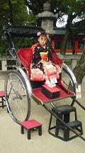 本日11月15日は、本来の七五三祝いの日。土日と重なるのは何年ぶりかのことであり、神社への参詣のピークとなることが予想される。幸いこの土日は結婚式の予約仕事が一本もなく(神社自体が結婚式の受付をしていない為)、完全に七五三関連の仕事に専念できる体制に。とは言え、三つの神社に写真館一ヶ所、並びに七五三送迎の仕事と全部で5つの現場があり、早朝より準備したものの例によってバタバタの展開の幕開け。私は何年かに一度お電話で依頼をいただく薬院の美容室へ、七五三のお子様&お母様の送迎に出向く。天神にある水鏡天満宮までの道のりを約30分かけてご案内。さすがに天神ど真ん中を抜ける訳にはいかないので、警固→今泉→渡辺通り→春吉の定番の裏道コースだ。往路復路を無事終え、コインパーキングに停めたトラックに積み込む段階になってはたと考えた。今回運搬してきた2トン車には別の人力車が一台乗ったままになっており、車高の高いこのトラックに積み込むには、どうしてももう一人後押し補助が必要なのに、スタッフは自分一人のみ。たまたま到着した美容室の斜め前が麺劇場 玄瑛という人気ラーメン店で大行列状態ということもあり、余程そこに並んでいる暇そうな男性に声を掛けて手伝ってもらおうかとも考えた。が、いやこんな事態は今後も必ず訪れるであろうから、何とか自力で解決できる方法はないかと考え直す。この状況を言葉で表現するのは難しいが、車高の高いトラックにかなり長い足場を渡しての積み込みになるため、トラックの上から人力車の梶棒まで手が届かないのだ。「待てよ、太いロープのようなものがあれば梶棒に引っ掛けて引っ張り上げることができるのではないか」そう考えた私はトラック内でめぼしいものはないか探してみた。目についたのはトラック内に人力車を固定するために使用しているラッシングの荷締め機。布状の太いベルトで強度も長さも万全だ。これを梶棒に引っ掛けて力一杯引き揚げたところ、自分一人の力で見事に人力車は動き、トラック内に格納することに成功!!!このトラックを手に入れてから半年経過しての快挙だ。人間追いつめられると知恵が働くものですね♪それにしても今まで諦めていた2トントラックへの人力車2台積み込みが一人でも可能となったことは大きな進歩だ。ご支援クリックいつもありがとうございます!→人気blogランキング<起業・独立部門>クリックしていただくと、一票投票されるシステムになってます。ただいま23位に。