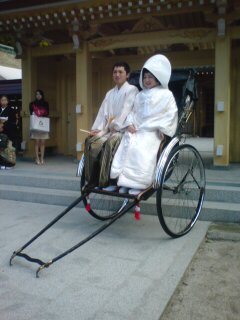 三連休最終日は天気予報通りの終日雨天。予定していた通り七五三営業は中止し、結婚式送迎の3現場のみスタッフ2名で対応。いずれの現場でも「雨の中を本当にすみません」という気遣いの言葉をかけていただき、それだけで憂鬱な気分は吹き飛ぶ。「人が乗った車を人が曳く」という特殊な仕事ならではの、お客様より受ける気配りには日本人ならではの美学がある。この仕事にハマってしまう理由の一つでもありますね。本日最後の送迎でご利用して下さった新郎新婦様からの一言「今回の結婚式でどうしても叶えたいことが二つありました。それは神社本殿での神前結婚式と人力車です!」いやー、ありがたいお言葉に本当に感激した。万人には当てはまらないけれども、100人に1人か2人位の特別な価値観をお持ちのお客様にとっては、どうしてもこだわりたいというニーズが確実に存在するのだ。そんなニッチな市場であっても、自分たちにとってはかけがえのない大切な存在。自らそんなお客様を探し出すのは至難の業だが、得意先パートナーの方のご支援のお陰で、今では仕事の柱として成り立つようにまでなった。遥か13年前に偶然出合った光景が自分自身を突き動かし、今や生業として成立できているのは感慨深い。まさに思考は現実化する。潜在意識に届くほど強烈に思い描いた夢は必ず実現できる!ご支援クリックいつもありがとうございます!→人気blogランキング<起業・独立部門>クリックしていただくと、一票投票されるシステムになってます。ただいま36位に。